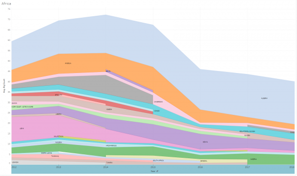 Algeria remains a powerhouse in Africa; Libya’s activity is impeded by civil unrest; drilling in many countries in Africa’s South stopped in 2015-2016.